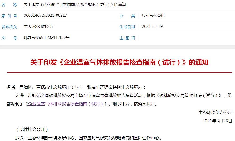 環(huán)保部發(fā)布《企業(yè)溫室氣體排放報告核查指南(試行)》