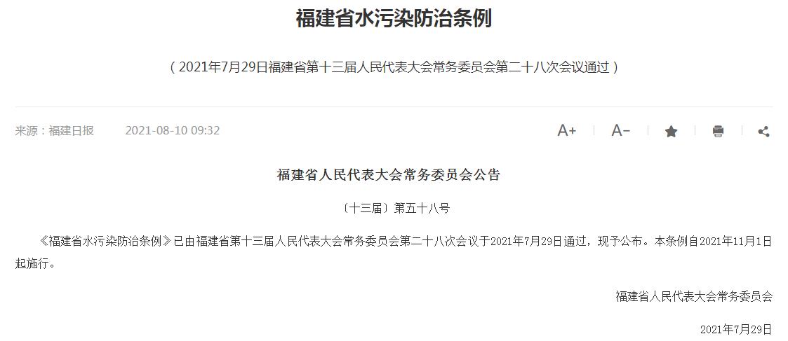 福建省發(fā)布《福建省水污染防治條例》