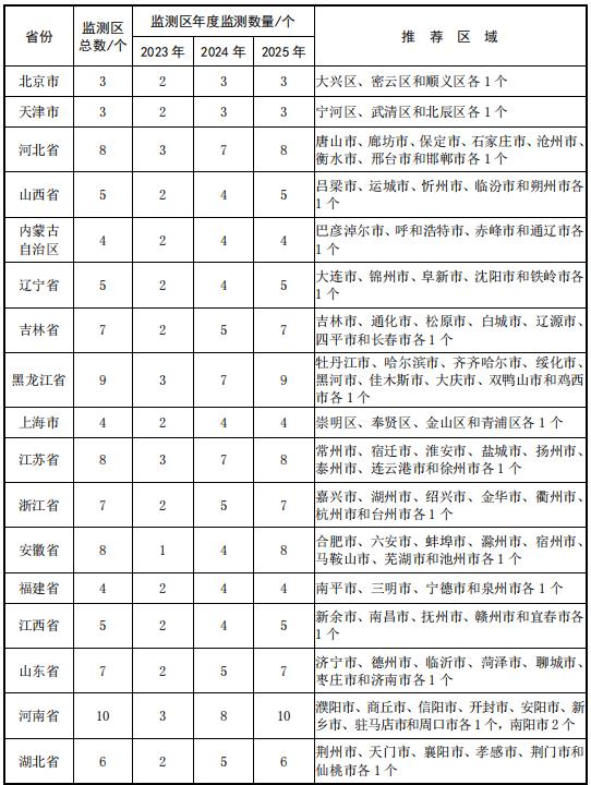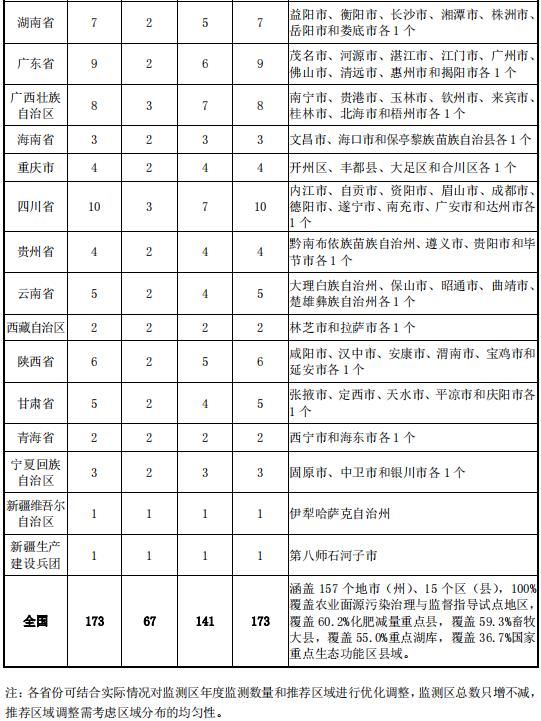 地方層面:各?。▍^(qū)、市)和兵團生態(tài)環(huán)境廳(局)負責本行政區(qū)域農業(yè)面源污染監(jiān)測評估,明確各級工作職權,制定監(jiān)測方案,構建監(jiān)測網絡,組織開展監(jiān)測評估和質量監(jiān)督,確保高質量完成監(jiān)測評估任務。2023—2025年,各省份對附件1推薦的173個監(jiān)測區(qū),逐年組織開展監(jiān)測工作,到2025年年底前完成全部監(jiān)測區(qū)的監(jiān)測,鼓勵有條件的省份在此基礎上拓展監(jiān)測區(qū)范圍和數量。
