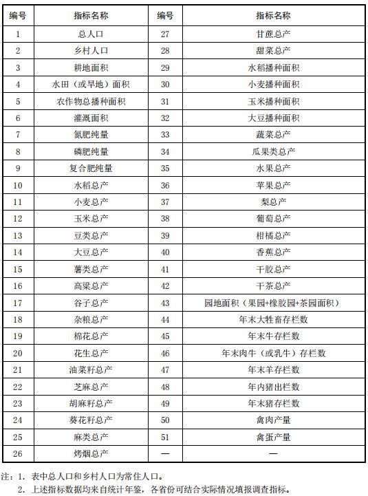 各省份參考統計年鑒和普查資料等,每年開展上一年度農業(yè)面源污染相關分縣指標調查,調查指標清單見附件4,各省份可結合實際情況填報調查指標。此外,有條件的省份可增加調查內容,包括規(guī)模養(yǎng)殖場及規(guī)模以下養(yǎng)殖戶數、畜禽養(yǎng)殖類型及養(yǎng)殖量。各省份以縣為單元,開展年度農業(yè)面源污染相關參數調查,調查指標包括農村(或城鄉(xiāng))生活垃圾無害化處理率、農村生活污水處理率、畜禽糞污綜合利用率(或資源化利用率),每年開展上一年度的參數調查。若分縣參數調查指標獲取難度大,建議各省份以地市級行政區(qū)為單元獲取相應指標。